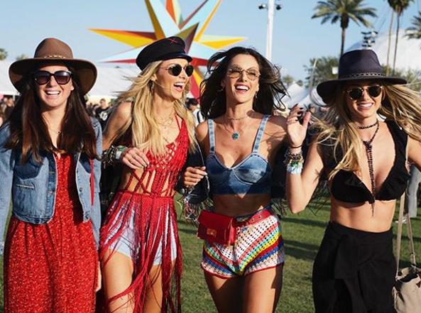 Non poteva mancare Alessandra Ambrosio, che si aggiudica lo scettro dello stile a ogni edizione. Questa volta la top ha sfoggiato un look composto da crop top, micro shorts crochet e giacca di denim con frange multicolor e poi un minidress a rete con giochi tie-dye. Presenti quest'anno anche le sorelle Gigi e Bella Hadid che hanno indossato top e shorts microscopici. Kendall Jenner invece, ha optato per un look casual formato da micro top sportivo, pantaloni mimetici e trainer. Splendida anche la modella Jasmine Tookes con top di pizzo cut-out e maxi skirt floreale. A completare il look un cappello di paglia e sandali flat borchiati.